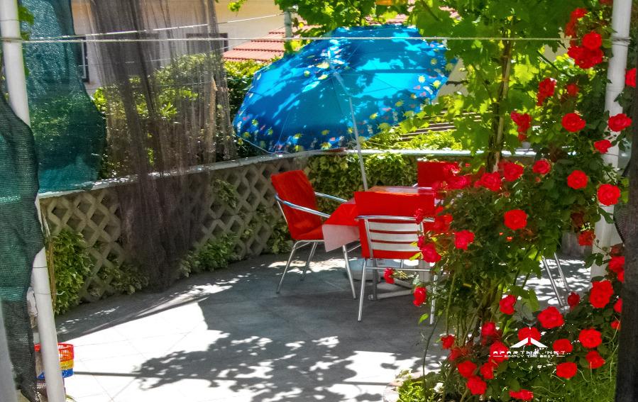 Apartment 1 2 +2 is on the ground floor and has its own beautiful terrace from which you come into the kitchen , which is quite large and fully equipped with everything you need to prepare food. Apartment has two beds for 2 children or 2 adults and double bed in the bedroom . It has satellite TV. The bathroom has a shower . Apartment has parking space .