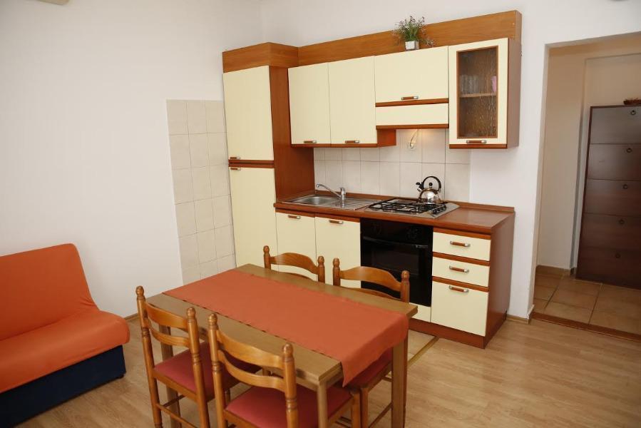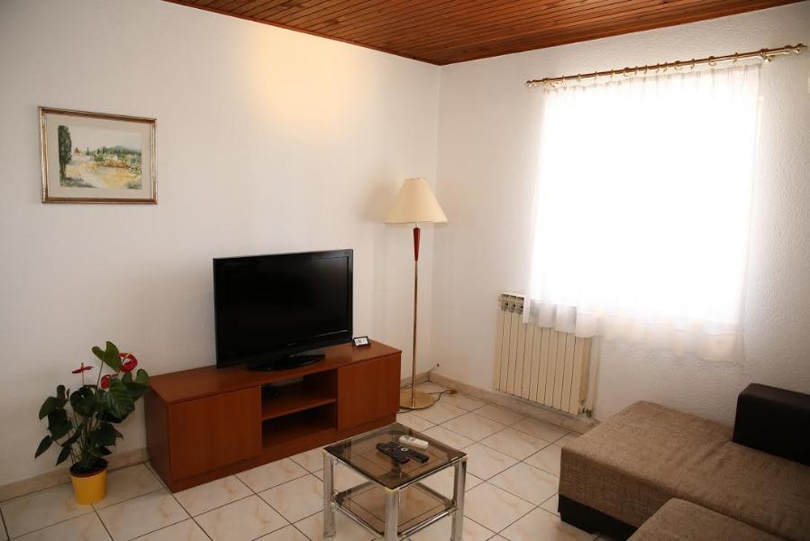 A1 3+2 is very comfortable and spacious apartment, located on the ground floor, near the studio apartment A2, and you can rent them together, if these are two pairs, two families or larger groups. It has its own entrance and terrace. It has a large triple bedroom and a separate living room, where the sofa, which can serve as a bed for 2 persons. The apartment has 40 m2, and is suitable for 2 to 4 persons, possibly 5 if 3 are sleeping in the bedroom.