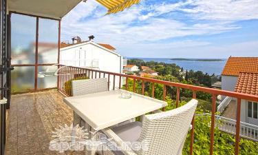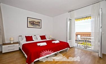 Apartment Mirta, 50 m2, is a three-bed apartment with two separate rooms and (two double beds)., And can accommodate 4 people, if necessary. It has one bathroom with toilet and a large kitchen and a terrace with a beautiful view to the south and hellish Apartment has a separate entrance from the garden.