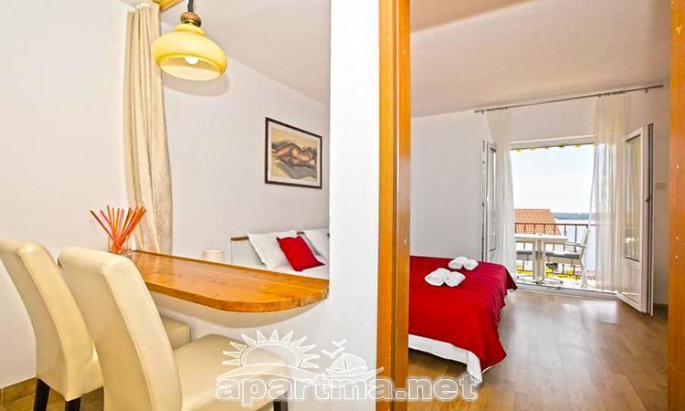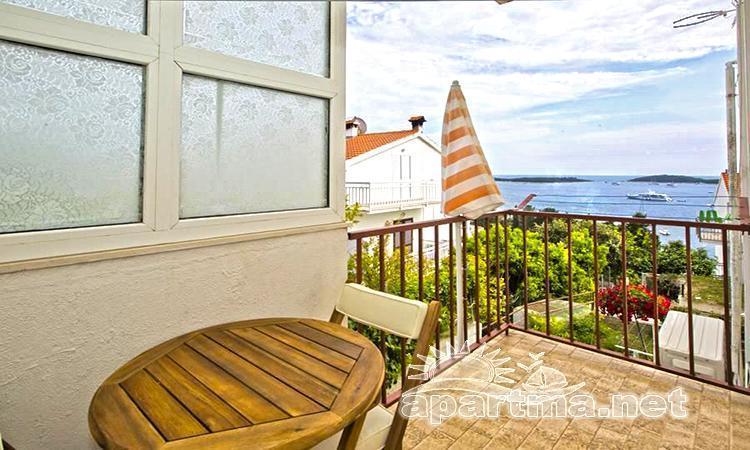 Apartment 'Maja' (37 m2), is a south-bound apartent that acommodates two persons. It has a large balcony with sea view including the view of Pakleni islands. Both kitchen and bedroom open on to the balcony. It has a large bedroom, bathroom and a spacious kitchen equiped with everything including oven, microwave and dishwasher. Apartment was recently completely renoveted, so all the furniture, and everything in the kitchen and barhroom is new.